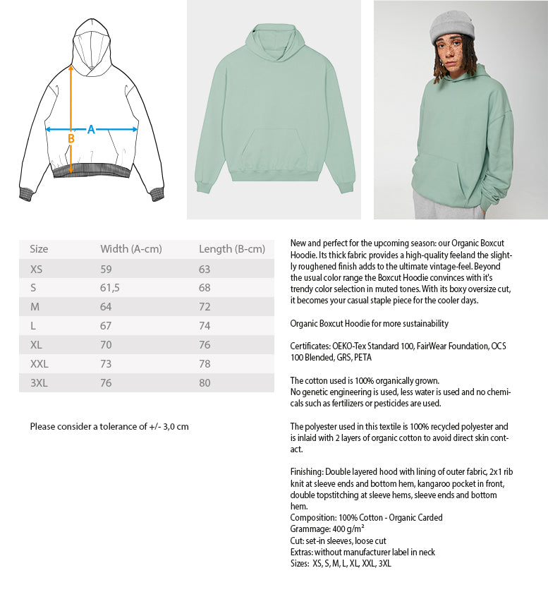 Der Organic Boxcut Hoodie ist dein neuer cozy Allrounder im angesagten Oversized-Look – weich, warm und 100% nachhaltig. Die hochwertige Bio-Baumwolle sorgt für ein besonders angenehmes Tragegefühl, während die große Kängurutasche Platz für Handy & Co. bietet. Die doppellagige Kapuze schützt vor Kälte und macht den Hoodie zum perfekten Begleiter für Herbst und Winter. Ideal als Geschenk – egal ob Geburtstag, Weihnachten oder einfach als liebevolle Aufmerksamkeit.