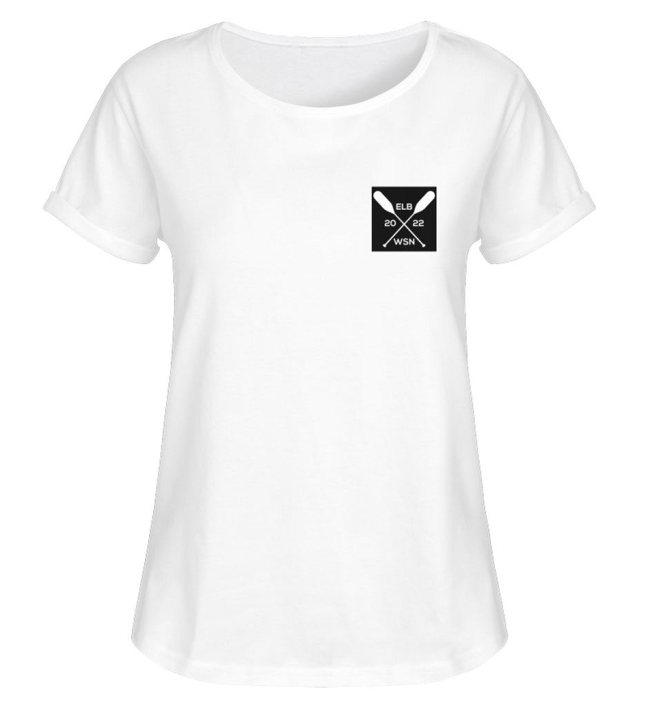 Unser ELBWSN RollUp-Shirt mit minimalistischen Motiv ist eine tolle Abwechslung zum alltäglichen Standard und ein ideales Geschenk für stilbewusste Frauen.