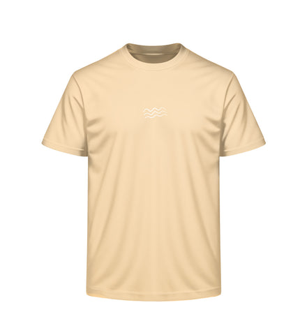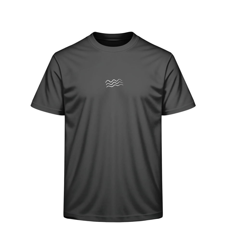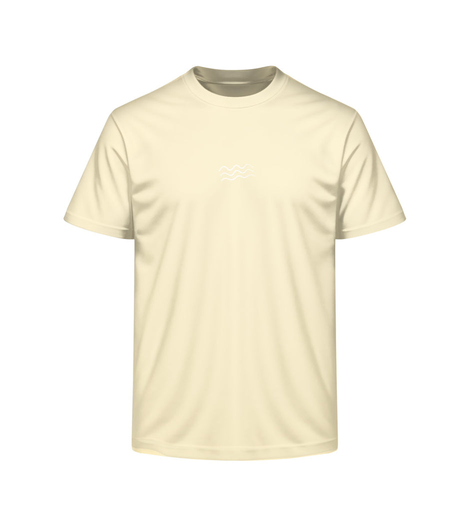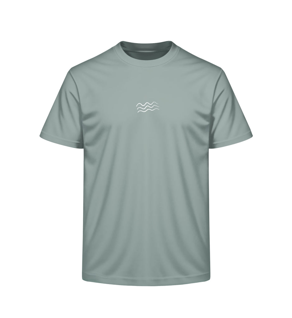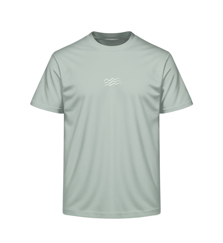 Dieses Shirt in soften Farben bringt Understatement auf ein neues Level – mit feinen Wellen vorn und markanter Message im Nacken.